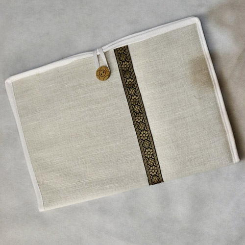 It is made from Fine Quality Jute Fabric and has an attractive pattern. Outside material is made up from Jute and inside material of this Folder is made up smooth cloth. It has strong Velcro closure mechanism to hold your documents safely in place.